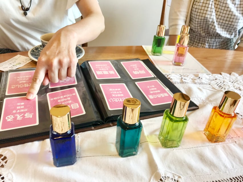 「ハイヤーセルフとつながるワーク」とは、俯瞰して自分を見つめたり、自分自身の本当の気持ちや答えに気づくこと。4本のボトルの色から、過去・現在・未来の自分と向き合います。具体的な悩みや課題があるときにおすすめです。